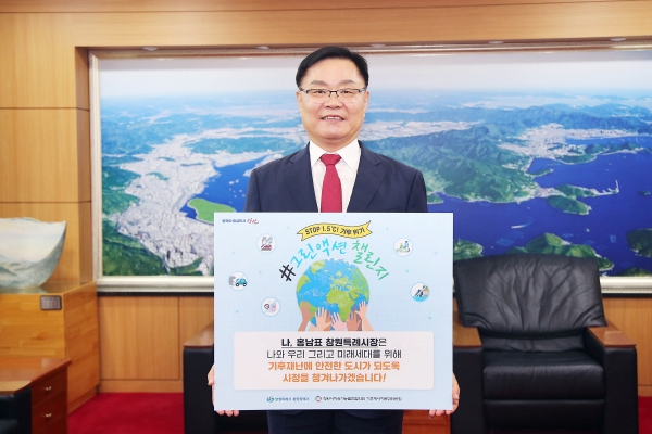 1호 챌린저로 나선 홍남표 창원특례시장은 “나와 우리 그리고 미래세대를 위해 기후재난에 안전한 창원특례시가 되도록 시정을 챙겨 나가겠다”며 “펄펄 끓어 열이 나는 우리의 지구가 다시 건강해 질 수 있도록 102만 창원시민의 참여를 당부한다”고 말했다.