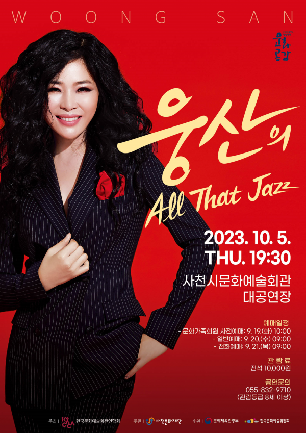 사천문화재단은 오는 10월 5일 오후 7시 30분 사천시문화예술회관 대공연장에서 콘서트 ‘웅산 All That Jazz’를 선보인다고 14일 밝혔다.