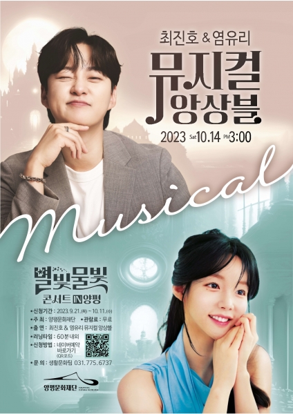 [금요저널] 양평문화재단은 오는 14일 오후 3시, 양평문화재단 2층 씨어터 양평에서 ‘별빛물빛 콘서트 in 양평’ 네 번째 무대로 최진호·염유리를 초청해 클래식과 크로스오버 음악의 장르를 넘나드는 공연을 개최한다.