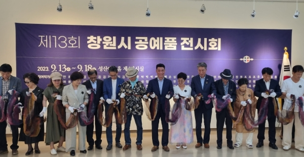 창원특례시가 주최하고 창원시공예협회가 주관하는 ‘제13회 창원시 공예품 전시회’의 개막식이 13일 하종목 창원시 제1부시장, 염영희 창원시공예협회장을 비롯한 공예협회 회원 등 100여명이 참석한 가운데 개최됐다.