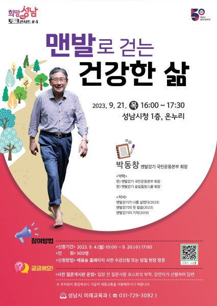 성남시, 21일 ‘맨발로 걷는 건강한 삶’ 강연 열어
