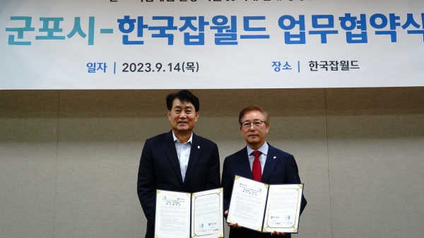 [금요저널] 군포시는 14일 한국잡월드와 관내 청소년의 진로직업체험 활동을 지원하기 위한 협약을 체결하고 이를 통해 청소년의 건강한 성장지원을 도모하기 위한 진로 전문기관과의 협력체계를 구축했다.