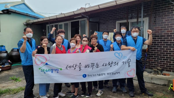 [금요저널] 한국가스기술공사 부산경남지사 사천사업소 그린누리 봉사단은 지난 14일 사천읍 취약 세대의 집수리 및 환경 정화 활동을 진행했다.