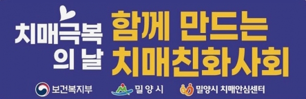 [금요저널] 밀양시는 ‘따뜻한 관심과 사랑으로 함께 만드는 치매친화사회’라는 주제로 오는 18일부터 22일까지 치매극복 주간으로 정하고 행사를 개최한다고 알렸다.