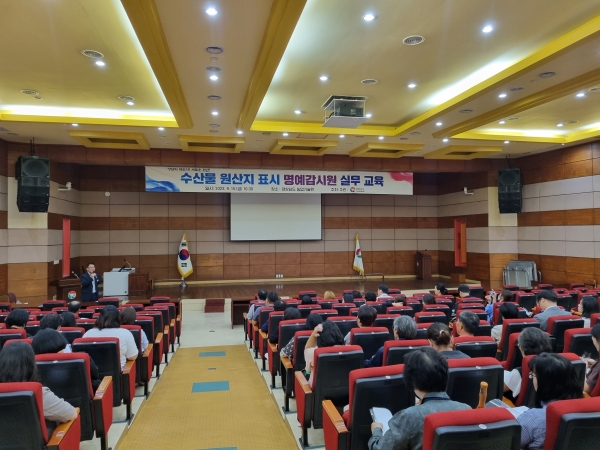 [금요저널] 경남도는 15일 경상남도 농업기술원에서 수산물 원산지 표시 점검 명예감시원과 시군 공무원을 대상으로 ‘2023년 수산물 원산지 표시 점검 명예감시원 실무교육’을 실시했다.