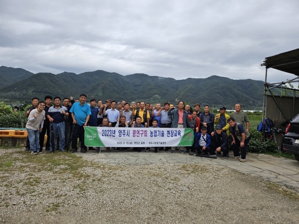 [금요저널] 양주시는 15일 양주시콩연구회 회원, 관계 공무원 등 50명이 참여한 가운데 경기도농업기술원 소득자원연구소 연천 친환경 콩 재배단지를 방문해 현장 교육을 실시했다.