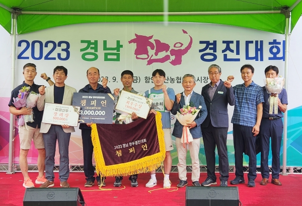 [금요저널] 경남 최고 한우를 선발하는 2023년 경남 한우경진대회에서 함양군이 챔피언 등 여러부문에서 수상하며 함양 한우의 우수성을 알렸다.