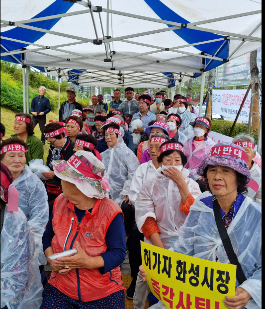 주민들은 이어 "화성시 기준은 가축으로 인한 피해신고는 반경이 500m이고, 음식물처리 시설로 인한 피해반경은 1천500m인데 주민을 기만하고 허가를 내줬다"며 "400가구의 피해가 예상되는데도 주민에겐 동식물사육(축사)시설이라 통지하는 정보은폐와 사업주 편에선 행정을 더이상 볼 수 없다"고 궐기 이유를 밝혔다.