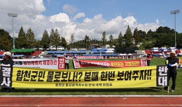 한편 대책위는 지난 6월 28일 500여명이 환경부를 항의 방문했고 9월 1일 50여명이 경남도를 방문해 “합천군민 모두가 반대하는 황강광역 취수장 설치계획 철회에 동참하고 합천군을 용역조사에 제외토록 환경부에 요구하라”고 항의했다.
