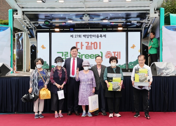 이영훈 구청장은 “백암 한마음 축제를 통해 어르신, 지역주민들 모두 몸과 마음의 여유를 찾고 가족과 이웃의 따뜻한 정을 느낄 수 있었기를 바란다“라고 말했다.