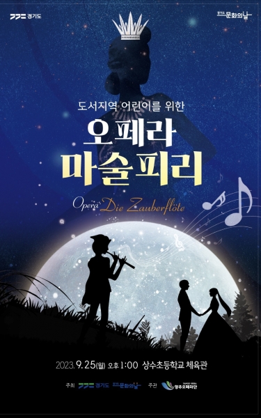 첫 번째로 관내 상수초등학교와 은현초등학교 학생 및 학부모를 대상으로 어린이를 위한 오페라 ‘마술피리’가 오는 25일 오후 1시에 관내 양주 상수초등학교 체육관에서 진행된다.