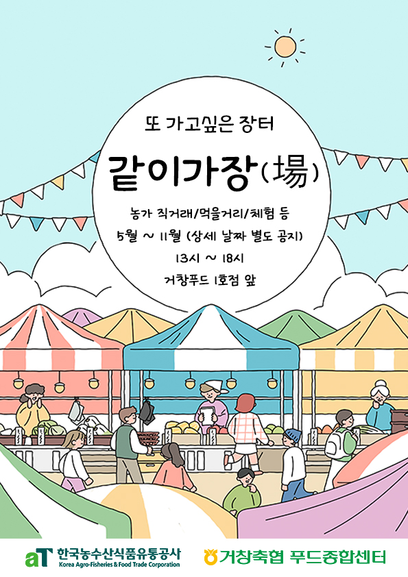 김동석 거창군 농업기술센터 소장은 “주말 직거래 장터가 거창군의 로컬푸드를 알리고 생산자와 소비자가 상생할 수 있는 장이 될 수 있도록 꾸준히 노력하고 있다”며 “한자리에 볼거리, 먹을거리, 놀거리를 준비한 만큼, 많은 군민이 머물다 가셨으면 한다”고 말했다.
