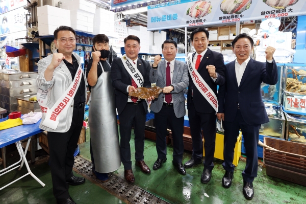 도의회 국민의힘은 특히 후쿠시마 원전 오염 처리수 방류 이후 위축된 국내 수산물 판매 촉진을 위해 수산물을 구매하고 현장에서 직접 수산물 식사를 하면서 상인들을 격려했다.