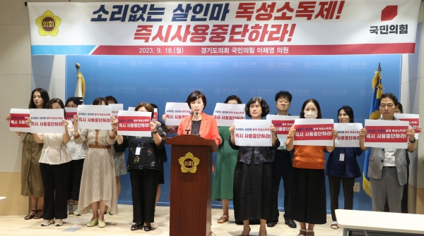 [금요저널] 경기도의회 기획재정위원회 이채영 의원은 오늘, 경기도의회 기자회견실에서 ‘소리없는 살인마 방역 독성소독제 즉시 사용 중단하라’ 성명서를 발표해 공공 방역 현장에서의 맹독성 소독제 사용 중단을 촉구했다.