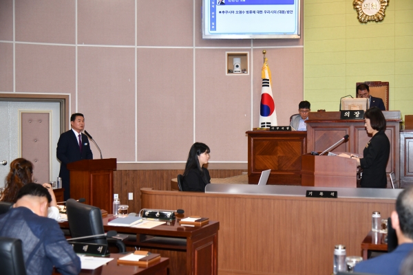 이번 시정질문에서는 한은진의원, 이태열의원, 김선민의원이 공통적으로 후쿠시마 원전 오염수 방류와 관련 우리 시 대응방안에 대해 질의했다.