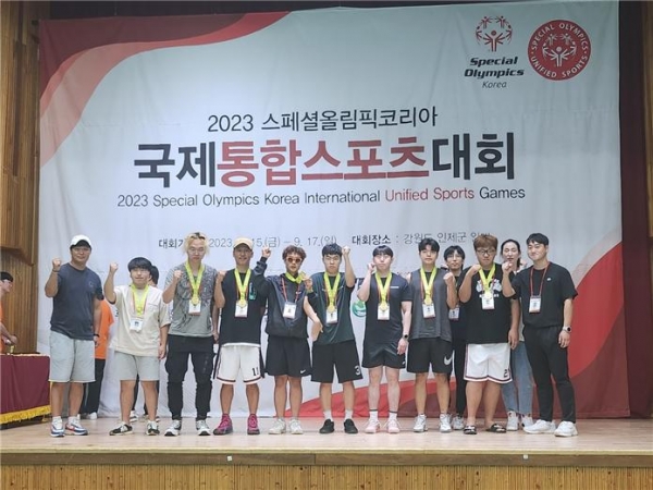 [금요저널] 사천시 장애인종합복지관 소속 사천 제니우스 농구단이 ‘2023 스페셜올림픽코리아 국제통합스포츠 대회’의 통합농구 부문에서 1위를 차지했다.