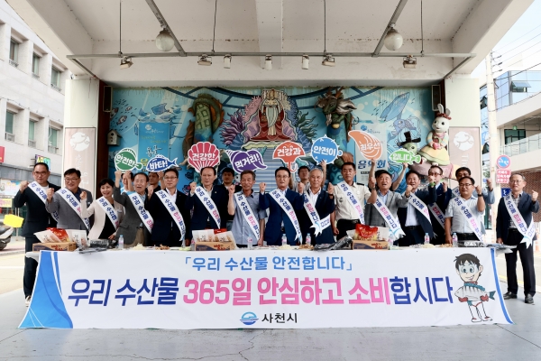 [금요저널] 사천시는 민족 최대의 명절인 추석에 즈음해 9월 18일 기관단체장 9월 월례회 시, 기관단체장이 솔선수범 참여해 지역 수산물 안전성 홍보 및 소비 촉진 활성화를 위한 캠페인을 대대적으로 전개했다.