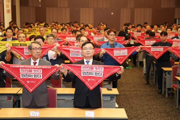 안전이 있다’라는 주제로 노·사 대표자의 결의문 낭독에 이어 무재해기 서명, 손수건 퍼포먼스를 통해 안전수칙 준수, 위험성평가, 안전보건체계 구축 등 사업장의 산업재해를 예방하고 안전한 일터를 조성할 것을 결의했다.