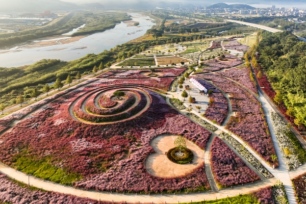 각종 SNS에 사진 명소로 유명한 신소양체육공원은 핑크뮬리 동산을 따라 황화코스모스, 구절초, 가우라까지 가을 나들이를 즐기기에 충분하다.