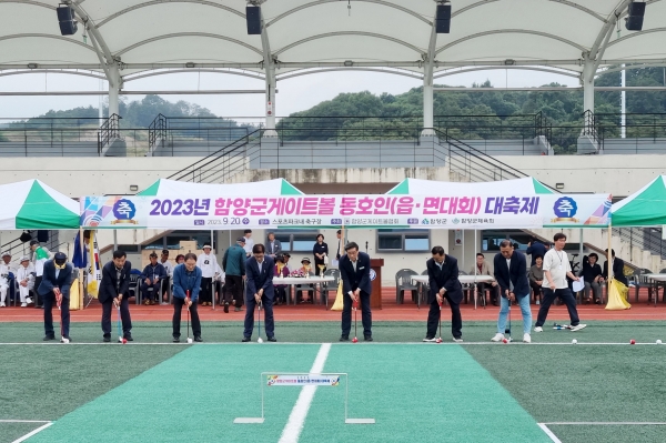 [금요저널] 함양군은 20일 함양 스포츠파크 1구장에서 11개 읍·면 선수 및 임원 등 300여명이 참여한 가운데 ‘2023년 노인게이트볼 읍면친선대회’를 개최했다고 밝혔다.