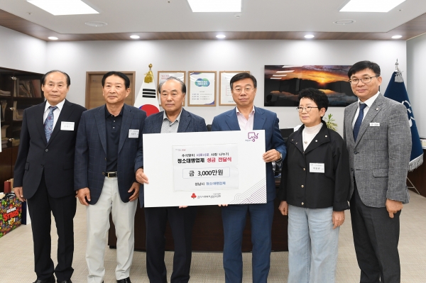 성남지역 청소대행업체 20개사는 20일 취약계층을 위해 써달라며 성남시에 성금 3000만원을 기탁했다.