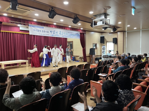 이에 지난 20일 복지관에서 경로당여가문화보급사업 및 복지관 회원 등 150여명의 어르신들에게 연희전통단의‘우리들의 청춘시절 ’만담의 폭소마차’ 공연을 제공했다.