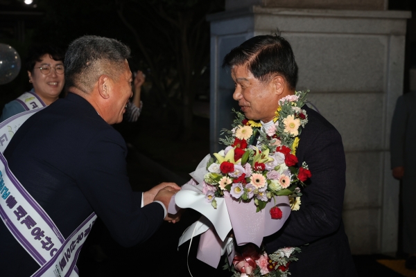 이에 군에서는 고성군민의 오랜 염원이 성사됨을 축하하며 고성군 대표단에 꽃다발을 전달하고 고성문화원 풍물단의 환영 공연 군수님 축사 고고가야주민수호단의 축사 순으로 환영식이 진행됐다.
