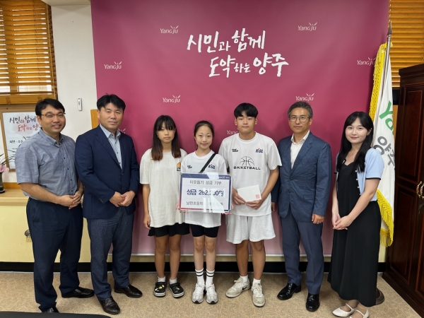 [금요저널] 양주시 남면은 지난 19일 남면 초등학교에서 행정복지센터를 방문해 이웃돕기 성금 26만원을 전달했다고 밝혔다.