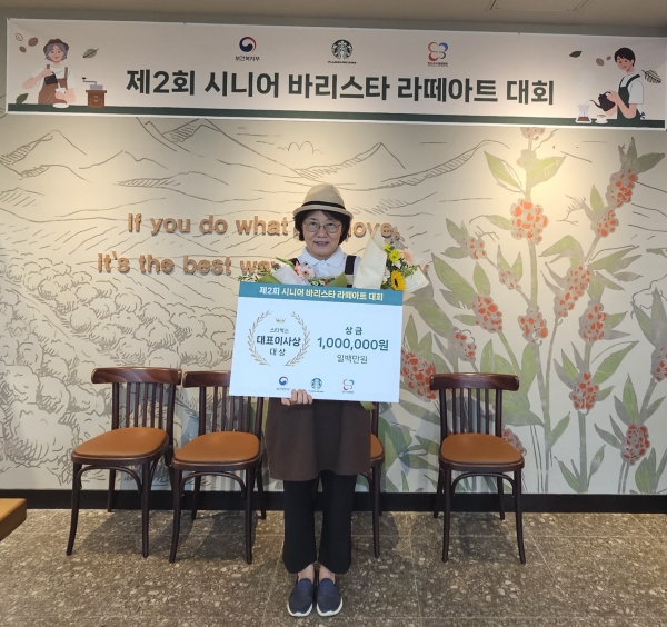 임재수 바리스타는 하트와 장미꽃을 정교하게 라테아트로 표현해 높은 평가를 받았으며 수상소감에서 “화성시니어클럽 관장님을 비롯한 직원분들 및 노노카페 동료들의 응원 덕분에 대상을 수상할 수 있었다”며 감사의 인사를 전했다.