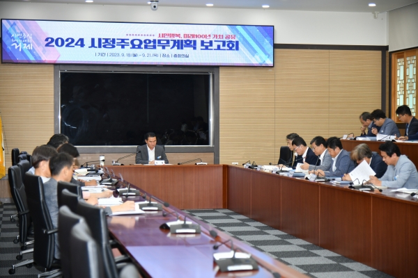 이번 보고회는 박종우 시장 주재로 국·소·실별 국·소장, 부서장, 팀장이 참석한 가운데 2024년 역점·신규사업 등 중점 추진과제를 논의했다.