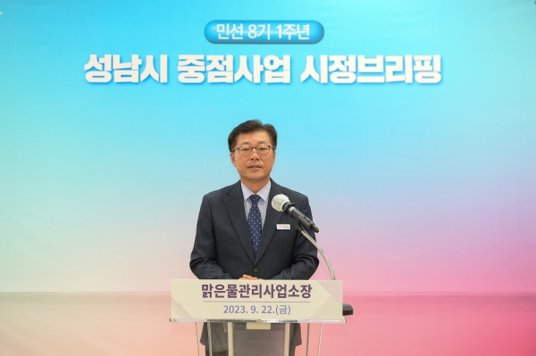 [금요저널] 성남시는 민선 8기 1년을 맞아 맑은물관리사업소 주관으로 공약사업과 중점사업의 추진 성과와 향후 계획 공유를 위해 9월 22일 오전 11시 한누리에서 시정 브리핑을 진행했다.