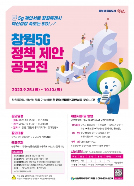 [금요저널] 창원특례시는 수요자 중심 정책 마련을 위해 25일부터 ‘창원5G 정책 제안 공모전’을 개최한다고 밝혔다.