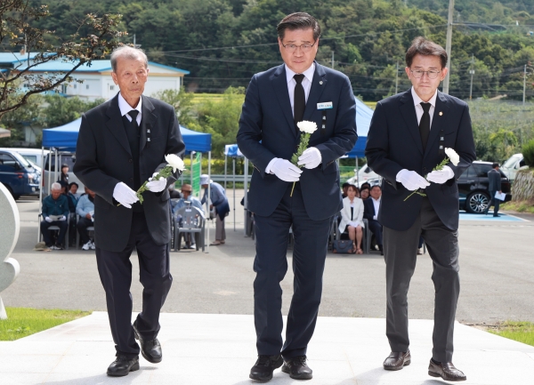 [금요저널] 한국전쟁 전후 함양 양민희생자 유족회가 주최한 제74주기 제33회 함양 양민희생자 추모식이 9월 22일 오전 11시 30분 수동면 도북리 추모공원에서 개최됐다.