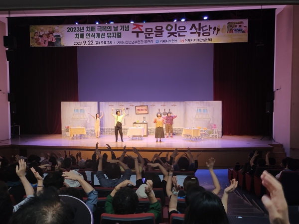 [금요저널] 거제시치매안심센터는 제16회 치매극복의 날을 맞아 지난 22일일 거제시청소년수련관 공연장에서 지역 주민과 치매환자와 가족 등 400여명이 참석한 가운데 ‘치매인식개선 뮤지컬’ 공연을 성황리에 마무리했다.