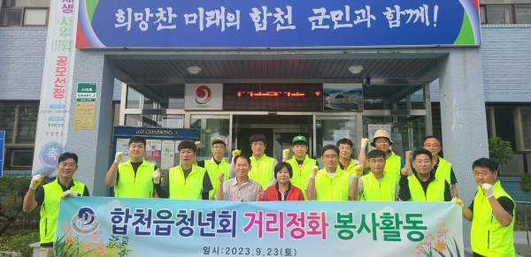 [금요저널] 합천읍청년회는 지난 23일 합천읍 일원에서 곽대원 합천읍청년회장을 비롯한 회원 30여명이 모여 ‘환경정화활동 및 청렴 캠페인’을 실시했다고 25일 밝혔다.