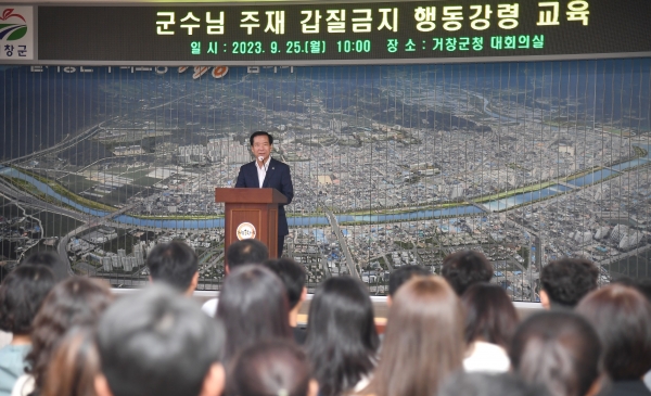 [금요저널] 거창군은 25일 군청 대회의실에서 간부공무원을 포함한 직원 200여명을 대상으로 청렴교육을 시행했다.