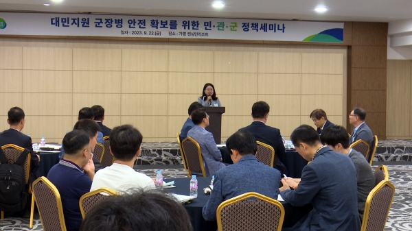 이날 정책세미나는 고 채상병 사망 사건을 계기로 대민지원에 투입되는 군 장병의 안전확보 방안 마련을 위해 개최됐으며 군 장병 협력 관련 담당 공무원과 군 부대 관계자 등 80여명이 참석해 재난발생 시 지자체와 군 협력 발전방향 및 군 대민활동 지원에 관한 조례 입법방향 등을 논의했다.