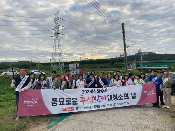 [금요저널] 양주시 양주1동은 25일 다가오는 추석을 맞아 쾌적하고 편안한 명절 분위기를 조성하기 위해 어둔천 일원에서 대청소를 진행했다.
