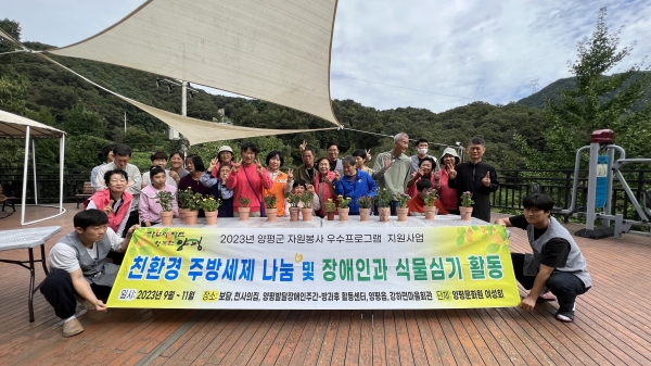 양평군자원봉사센터 소속 단체인 양평문화원여성회는 ‘2023년 양평군 자원봉사 우수프로그램 지원사업’에 선정되어 친환경 주방세제 나눔 및 장애인과 식물심기 활동사업을 진행하고 있다.