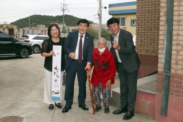 [금요저널] 옹진군은 제27회 노인의 날을 맞이해 올해 100세를 맞이한 어르신을 직접 찾아 건강과 장수를 상징하는 장수지팡이 청려장을 전달하고 건강과 행복을 기원했다고 밝혔다.
