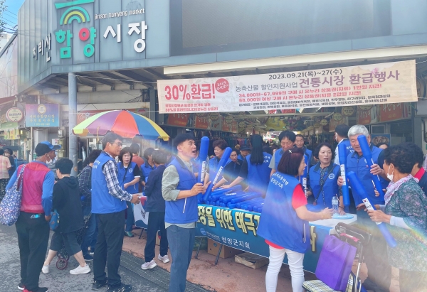 [금요저널] 한국자유총연맹 함양군지회는 국경일이 많은 10월을 앞두고 ‘나라사랑 태극기 나누기’행사를 펼쳤다.