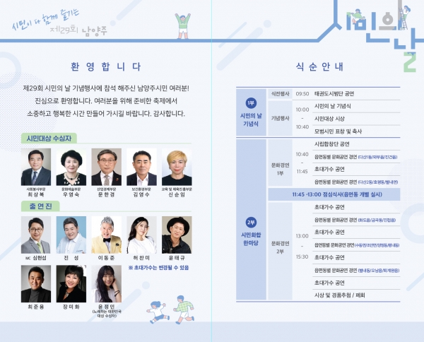 한편 이번 제29회 남양주 시민의 날 기념행사는 별도의 신청 없이 74만 남양주 시민이면 누구나 참석이 가능하다.