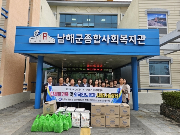 [금요저널] 법무부 청소년 범죄예방위원회 남해지부는 지난 26일 추석명절을 앞두고 남해군가족센터를 방문해 다문화가족 및 외국인 근로자를 위한 생필품 25개를 전달했다.