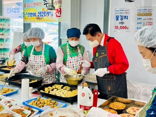 매년 설과 추석 명절을 앞두고 진행하는 강상면 새마을회 전 판매 행사는 새마을회 회원들이 재료 손질부터 전 부치기까지 손수 정성을 들여 만들어 판매하며 수익금은 불우이웃돕기 성금으로 쓰인다.