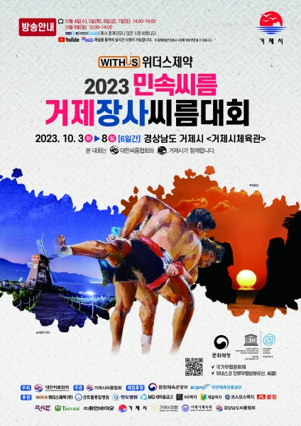 [금요저널] ‘위더스제약 2023 민속씨름 거제장사씨름대회’가 오는 10월 3일부터 8일까지 6일간 거제시체육관에서 성대하게 개최된다.