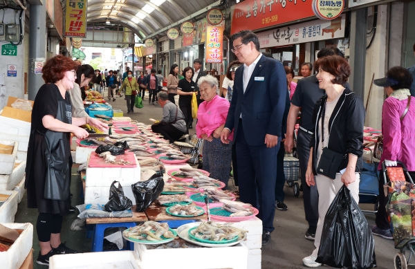 진 군수는 27일 함양읍 장날을 맞아 지리산함양시장을 방문해 ‘공무원 시장가는 날’과 ‘소비촉진 캠페인’의 일환으로 장보기 행사를 진행했다.