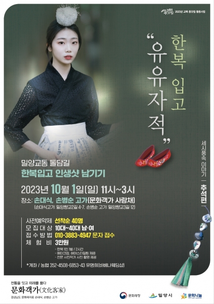 [금요저널] 밀양시는 오는 10월 1일 오전 11시 교동 손대식 및 손병순 고가에서 고택종갓집 활용사업의 ‘세시풍속 이야기-한복 체험, 줄타기 공연’을 한다고 밝혔다.