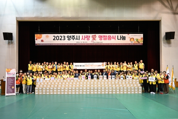 한편 이번 명절음식나눔 행사에는 경기도자원봉사센터 보조금을 비롯한 대왕식자재마트 대한적십자봉사회양주지구협의회 문화예술교육공동체‘탐’ 바르게살기운동양주시협의회 사)양주시여성단체협의회 사랑나무어린이집 사회복지사협회양주시지회 서울우유협동조합양주신공장 양주시민회 양주시상록봉사단 양주시새마을회 양주시의용소방대연합회 어영숙 영석건설주식회사 오보틀 우리들식품 제이에프케미칼 청건축사무소 한걸음봉사회 한울림라이온스클럽 향기나리가족봉사단 회천1동주민자치위원회 회천2동지역사회보장협의체 65+자유롭G서정캠퍼스 F&V.6 가족봉사단 NH농협양주시지부 등 31개 기업, 기관, 단체가 함께 동참해 1천 8백여만원의 후원금으로 진행되며 시예산을 크게 절감해 운영됐다.