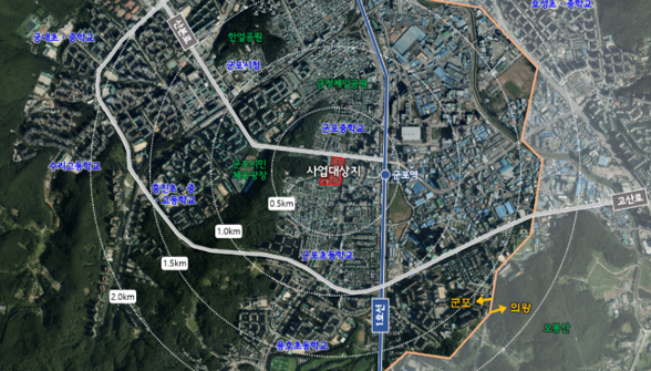 이번 공람은 구역 면적 약 9만 7천㎡로 지샘병원 인근의 가칭)군포1구역 재개발사업 군포1동 행정복지센터 서측의 가칭)군포3구역 재개발사업 금정고가차도 남측의 가칭)금정3구역 재개발사업 추진준비위원회로부터 입안 제안된 정비계획에 관한 것으로 이 지역 주민들은 지난해 11월 군포시에 재개발 정비계획 입안을 제안한 바 있다.