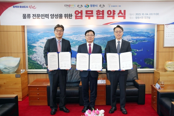 [금요저널] 창원특례시는 4일 쿠팡풀필먼트서비스, 한국폴리텍Ⅶ대학과 함께 기업 맞춤형 물류 전문인력 양성을 위해 삼자 협약을 맺었다.